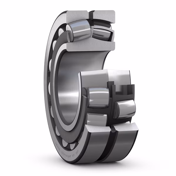 Spherical roller bearings can accommodate heavy loads in both directions. They are self-aligning and accommodate misalignment and shaft deflections, with virtually no increase in friction or temperature. The design includes features to facilitate relubrication. The bearings can be used in a modular system, including housings, sleeves and nuts.
